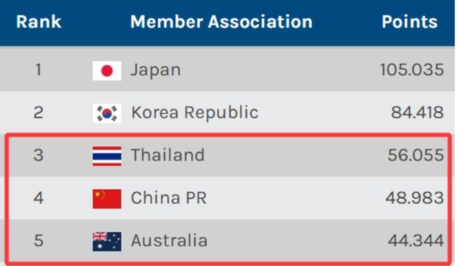 不出意外的话,当本赛季亚冠联赛结束的时候,澳超就能够实现对中超的超越,届时中超在亚洲联赛的排名将会跌落到第五名。